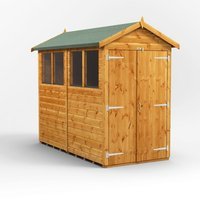 Power Sheds 8 x 4ft Double Door Apex Shiplap Dip Treated Shed Responsibly sourced high grade Scandinavian timber. 12mm thick shiplap tongue and groove, including the roof and floor. Heavy duty framing with corner bracing on all wall panels. Garden sheds with windows use toughened safety glass as standard – 500% more resistant to heat and shock than ordinary glass. Pre-fitted to our garden sheds to make assembly even easier. High performance polyester backed waterproof felt. Special formula wood preserver allows you to go a year without needing to retreat. Lock and key, full fixings and instructions included as standard. Multiple national award-winning garden shed manufacturer including UK Best New Business, Award for Innovation and Disruptor of the year.