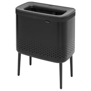The Brabantia Bo Laundry Bin incorporates a beautiful design with practicality. It fits flat against the wall and the adjustable long non-skid legs make it very stable. Thanks to the clever quick-drop opening you don’t even have to open the lid when you put items in the bin. The striking matt black finish will add some style to your bathroom or utility room and due to its design the laundry is hidden from view.