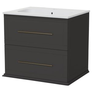 Duarti by Calypso Kentchurch Strata Grey Wall Hung Vanity with Farley Recessed Basin & Brass Handles - 600mm - Buoogle