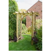 The Ultima Pergola Arch effortlessly creates a stunning feature to frame a garden walk-way Manufactured from pressure treated timber for a superior build 15 year guarantee against rot and fungal decay Traditional thick roof batons aid a sturdy structure The size makes it perfect for both small and larger gardens Lattice side panels are great for training climbing plants