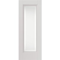 Classic white primed interior door with etched glazed panel and decorative flush mouldings. White Primed Flat panel with decorative flush mouldings Solid construction Suitable for Colour Options Paint Service
