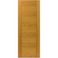 Popular contemporary oak veneered internal door with grooved panel effect, supplied complete with varnish finish 5 ladder style panels with real wood grooves Pre-finished oak veneer Can be trimmed up to 3mm each side Flush