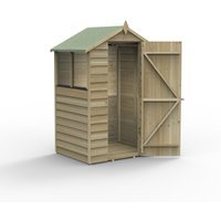 Overlap Pressure Treated 4×3 Apex Shed Home Delivery The Forest 4Life Overlap Pressure Treated 4×3 Apex Shed is strong, and secure. If you are looking for a compact shed to store away gardening equipment it’s an excellent option. This wooden shed comes with an improved design, featuring modular panels. This means it’s delivered in smaller sections but you get more wood, making for an easier assembly, more versatile configuration and a much stronger shed. All in all, the Forest 4Life range of sheds are the best overlap sheds we’ve ever made. Supported by 30%-thicker framing than found on most wooden sheds, this 4×3 shed is constructed using straight-cut 7mm boards that overlap to give flexibility, allowing natural movement of the timber during the changing seasons and aiding rain water run-off. The pressure treatment that has been applied gives this shed a 25-year anti-rot guarantee, giving you maintenance freedom, preservative treatment is NEVER needed! You’ll only ever need one shed with a 4Life Shed! Rather than the more common OSB (oriented strand board), this garden shed features an extra-thick 14mm solid timber floor, allowing for the storage of heavier items. The roof of this apex shed is made from hardwearing 8mm solid sheet, finished with a green sand-felt cover for complete weatherproof protection. This 4×3 shed’s door features a double-Z frame, for increased strength and to prevent door movement Security is enhanced with hidden hinges and a padlock-ready simple and secure hasp and staple latch to keep valuable items safe (padlock not included). The Shed has shatter-proof PET glazing which is more secure than traditional glass and does not yellow or fade over time. What’s more, the door can be fitted with a left or right-hand opening – the choice is yours. With its traditional apex roof, smooth-planed barge boards and diamond-shaped finial, this wooden shed will look good in any garden. Handcrafted in the UK using FSC® certified timber, this garden shed comes with a full set of fixings and clear instructions to help you achieve a straightforward assembly. This shed is delivered free to most UK addresses, using Forest Garden’s White Glove Delivery Service, so will be dropped off wherever you want it in your garden, with all packaging removed. An attractive garden shed, made with traditional straight cut overlap timber boards Pressure treated with a 25 year guarantee, the longest guarantee on the market. Maintenance free, preservative treatment is never needed. The modular panels mean that same-sized panels are interchangable, so you choose the door placement to suit your garden. Security enhanced with hidden hinges that are not accessible from the outside. 14mm solid wood floor as standard, much stronger than standard OSB shed floors 8mm solid sheet roof includes weatherproof felt cover. Double Z framing prevents door movement Manufactured in the UK from UK grown FSC® certified timber
