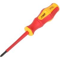 VDE Phillips No1 Screwdriver with a deep set steel blade. Safe working at 1,000V AC Soft Grip Ergonomic Handle Certified to DIN EN60900-2012 Phillips tip