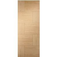 The Ravenna Glazed Oak Internal Door has the perfect look for modern homes featuring 10 horizontal and vertical grain panels of different sizes in an offset design. Made from sustainably sourced wood the engineered construction ensures strength and durability. This door is provided fully finished so it’s ready to install.